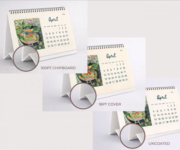 Each desk calendar is designed with a stable pop-up base, available in 18PT coated stock, 160# uncoated stock, or a rigid white board. These options ensure that your calendar remains sturdy, stylish, and durable, even in high-traffic environments like office desks and customer counters.